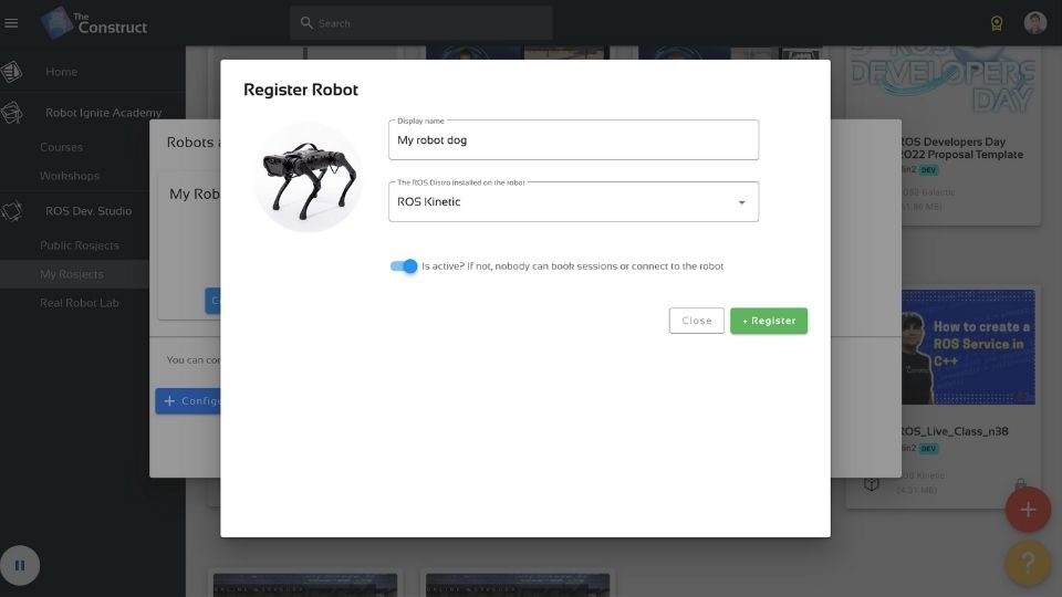 Follow the steps below to connect your own robot to The Construct: