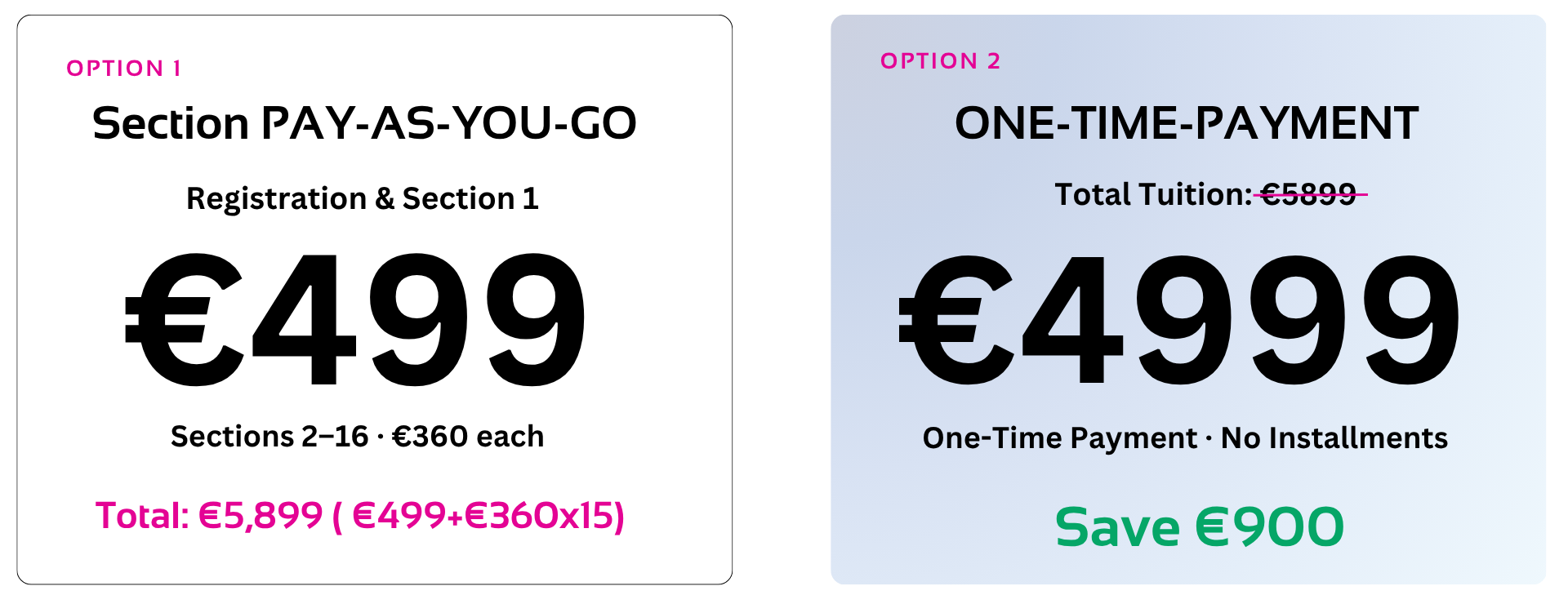 The training program is entirely online, so you can learn from anywhere without travel costs. You’ll practice robot programming with simulated robots and remotely access our real robot labs in Spain. Additionally, you’ll receive a real robot kit for hands-on learning and have personalized guidance through 1-on-1 video meetings with tutors.