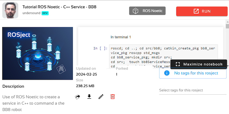 After pressing the Run button, you should have the rosject loaded. Now, let’s head to the next section to get some real practice.
