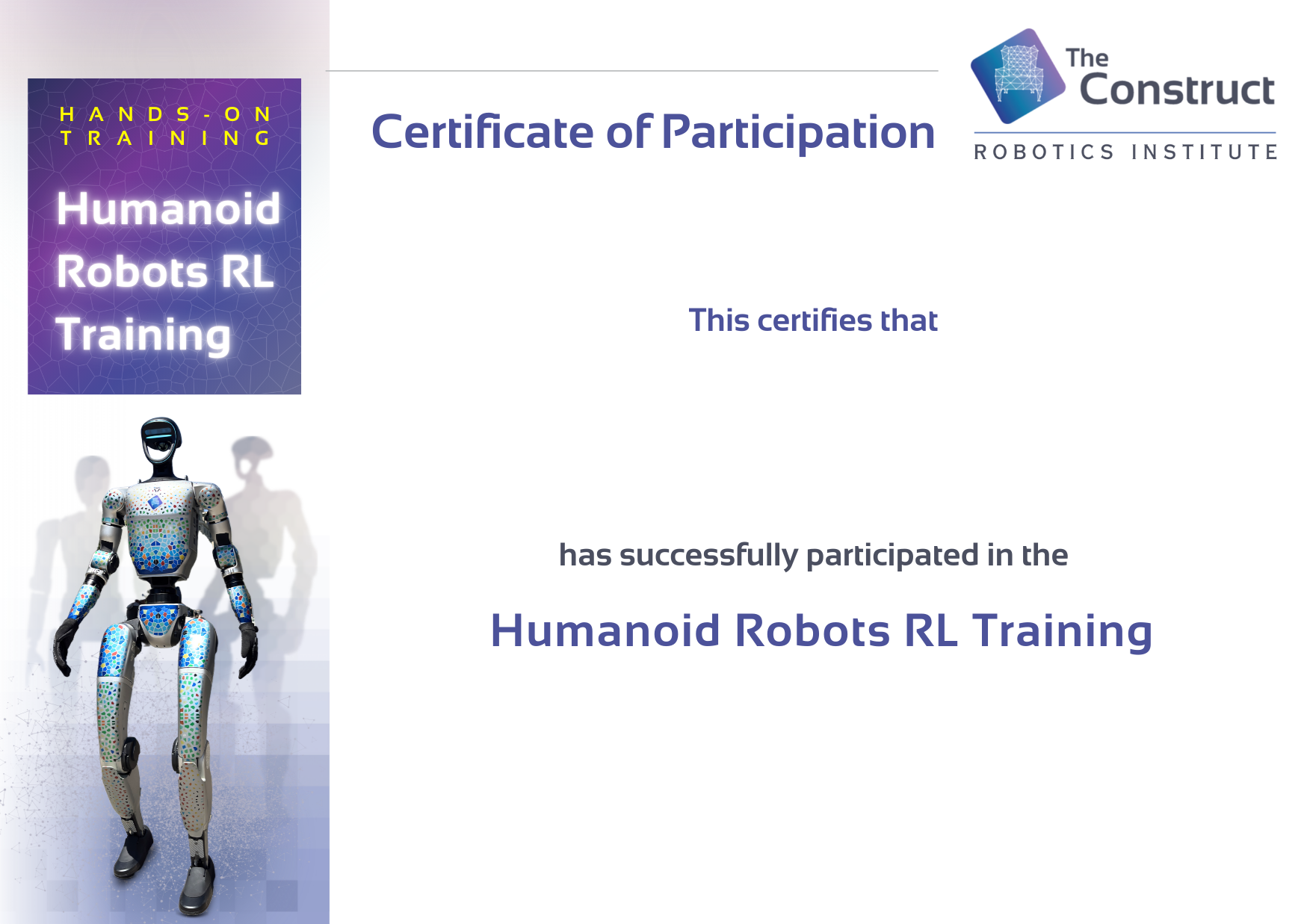 Earn a certification recognizing your proficiency in Humanoid Robot System.